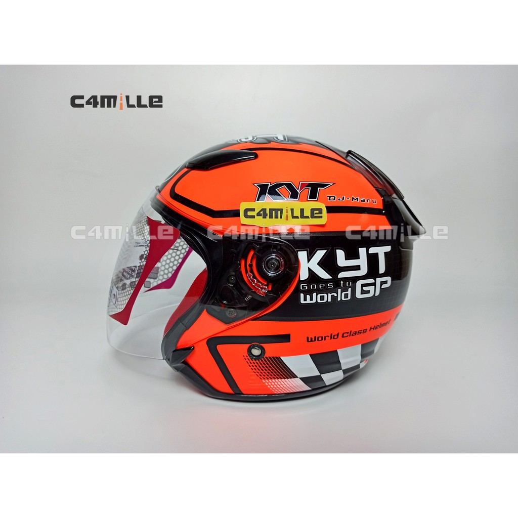 Jual Helm Kyt Dj Maru Motif 11 Black Red Fluo Half Face Indonesia Shopee Indonesia